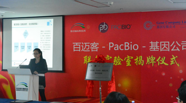 12 月27日,北京百邁客生物科技有限公司與PacBio、基因有限公司舉行了聯(lián)合實驗室揭牌儀式。北京百邁客生物科技有限公司創(chuàng)始人、董事長兼CEO鄭洪坤 先生,PacBio公司 Senior Director of Sales -North Asia(北亞區(qū)高級銷售總監(jiān))牟德宜女士;基因有限公司儀器事業(yè)部總經理項連才先生等多位三方代表參加了揭牌儀式。轉化醫(yī)學、生物谷、測序中國作為特邀 媒體參加了本次揭牌儀式。