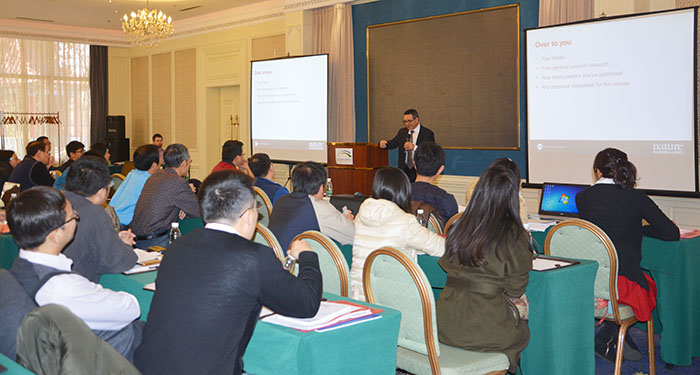 隨后的交流中,兩位大師級(jí)的資深編輯,圍繞論文寫作與發(fā)表的主題,重點(diǎn)講解了如何將研究成果轉(zhuǎn)化為科研論文,包括科學(xué)論文寫作的關(guān)鍵點(diǎn),以及如何正確使用 學(xué)術(shù)語(yǔ)言等。同時(shí),對(duì)科學(xué)出版流程,論文提交流程,以及同行評(píng)議流程等做了詳細(xì)的講解。對(duì)于一些焦點(diǎn)問(wèn)題,比如如何向高影響力的期刊提交論文,如何與編輯 和評(píng)閱人進(jìn)行溝通等,兩位大師結(jié)合自身的豐富工作經(jīng)歷,與學(xué)員進(jìn)行面對(duì)面的傳授經(jīng)驗(yàn)。在“Q & A”環(huán)節(jié),學(xué)員們結(jié)合自身撰寫科研論文的經(jīng)歷或遇到的困惑,與兩位大師開(kāi)展了熱烈的互動(dòng)和討論。培訓(xùn)班反響熱烈,參會(huì)學(xué)員均表示汲取了經(jīng)驗(yàn),開(kāi)拓了視野, 受益匪淺,希望以后有機(jī)會(huì)參與后續(xù)的系列講座。