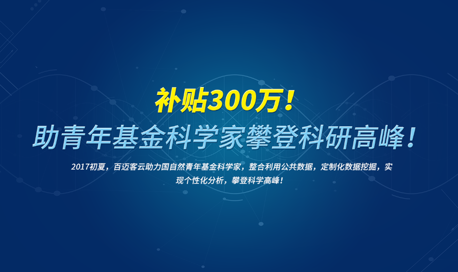 2017初夏,百邁客云助力國自然青年基金科學(xué)家,整合利用公共數(shù)據(jù),定制化數(shù)據(jù)挖掘,實現(xiàn)個性化分析,攀登科學(xué)高峰!