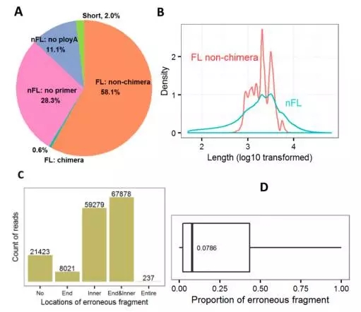 共獲得802,358個ROIs序列,其中有1.466,034全長非嵌合(FL)序列和316,000非全長(nFL)序列。