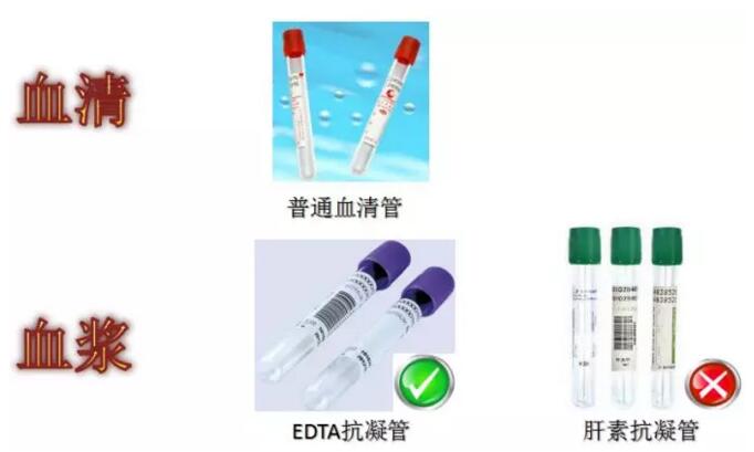 對(duì)于血清樣品,使用普通血清真空采血管即可;對(duì)于血漿樣品,推薦使用EDTA抗凝管,禁止使用肝素類抗凝管。
