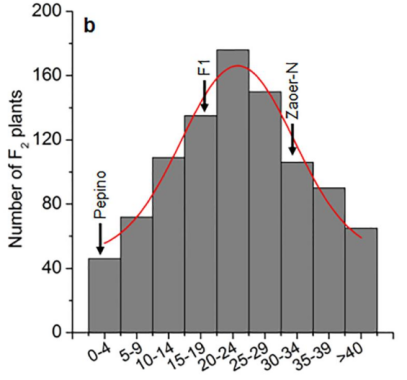 圖2 F2群體不定根數(shù)目分布統(tǒng)計(jì)