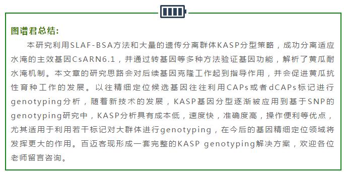 Bulked Segregant Analysis(BSA)分析是利用極端性狀個(gè)體混池快速進(jìn)行功能基因挖掘的常用方法,廣泛應(yīng)用在植物基因克隆方面。SLAF-seq是百邁客自主研發(fā)的簡化基因組測序技術(shù),通過對基因組特定的酶切片段進(jìn)行高通量測序,在降低基因組復(fù)雜度的基礎(chǔ)上,又獲得大量的基因組變異信息,在群體遺傳研究中發(fā)揮著重要作用。將SLAF-seq和BSA分析完美結(jié)合(SLAF-BSA)進(jìn)行功能基因定位,是一種快速、準(zhǔn)確、性價(jià)比極高的分析策略。日前,由百邁客和揚(yáng)州大學(xué)陳學(xué)好教授課題組合作,利用SLAF-BSA策略定位黃瓜耐淹基因,相關(guān)研究成果發(fā)表于新一期的Plant Journal雜志。本期圖譜君將對這一成果解讀,同時(shí)文末繼續(xù)有基于遺傳群體進(jìn)行基因定位的國自然標(biāo)書,期待能給大家3月份的國自然基金申請帶來一些靈感。