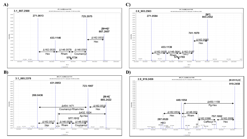 圖3 黃酮類(lèi)化合物的二級(jí)質(zhì)譜分析