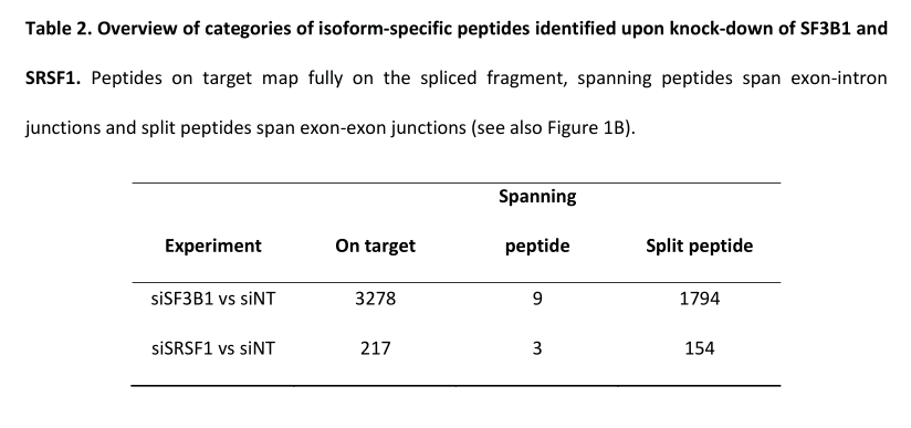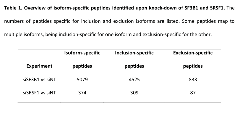 Splicify的意義在于識(shí)別RNA水平和蛋白質(zhì)水平上的isoform。通過對RNA和蛋白水平的對比分析證明該方法能夠成功地識(shí)別特定條件下蛋白質(zhì)水平上的異常剪接事件。