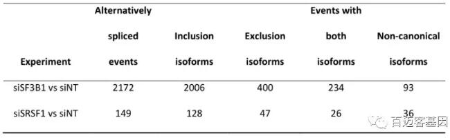 siSF3B1和siSRSF1產(chǎn)生的差異mRNA isoform: