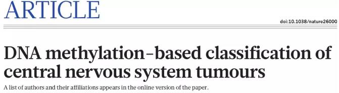 2018年3月14號,德國海德堡大學(xué)醫(yī)院神經(jīng)病理學(xué)系等機(jī)構(gòu)的專家,在Nature雜志上提出了一個全面的基于DNA甲基化對中樞神經(jīng)系統(tǒng)腫瘤分類方法。他們發(fā)現(xiàn)相比于常規(guī)方法,顯著提高了準(zhǔn)確性,修正了12%病例的初始組織病理學(xué)診斷結(jié)果。