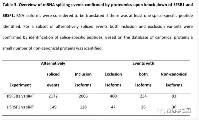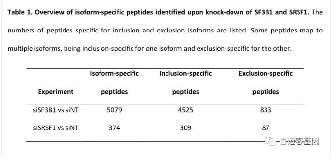 siSF3B1和siSRSF1產(chǎn)生的差異蛋白isoform