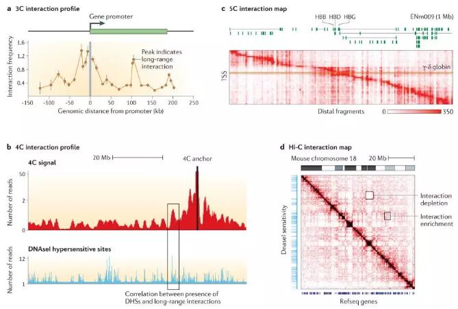 基于3C及衍生技術(shù),克服了成像技術(shù)的缺點(diǎn),能夠以足夠的分辨率在全基因組范圍內(nèi)研究染色體折疊,以及涉及的基因和調(diào)控元件。詳細(xì)介紹見上述實(shí)驗(yàn)技術(shù)——染色質(zhì)構(gòu)象捕獲及其衍生技術(shù)。