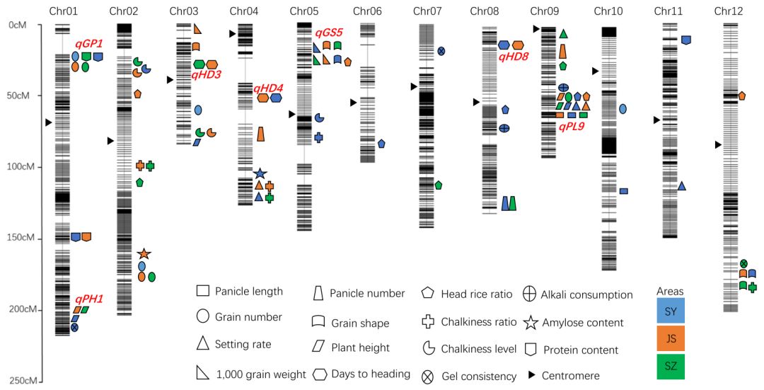2、不同稻區(qū)多年的表型數(shù)據(jù),定位到了多個QTL簇,從而將研究重點放在這些QTL簇上。