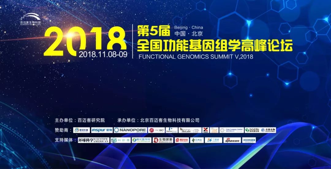 2018年11月8日,由百邁客研究院主辦、北京百邁客生物科技有限公司承辦的第五屆全國(guó)功能基因組學(xué)高峰論壇在京盛大開幕。此次峰會(huì)目的在于分享交流科研成果,開拓科研思維,加速科研成果轉(zhuǎn)化和推廣,共同促進(jìn)基因領(lǐng)域的發(fā)展。