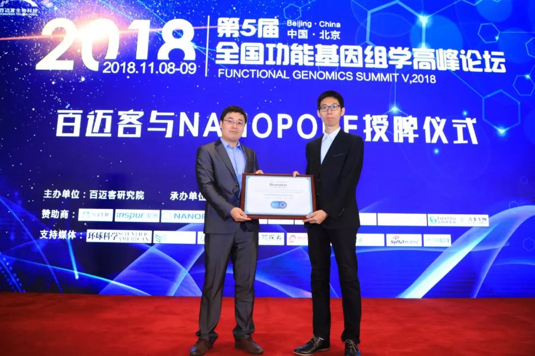 Nanopore官方人員預(yù)祝第五屆全國(guó)功能基因組學(xué)峰會(huì)圓滿成功,并確認(rèn)百邁客已拿到官方的DNA、RNA測(cè)序資質(zhì),這也是中國(guó)大陸拿到Nanopore RNA測(cè)序資質(zhì)的公司。同時(shí)百邁客也與Nanopore官方代表舉行授牌儀式。