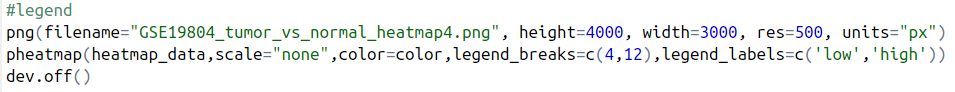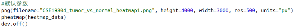 我們修改了字體大小,不顯示樣本名,以及設(shè)置圖片標(biāo)題,到此時(shí),經(jīng)過一系列參數(shù)更改,是不是已經(jīng)比一開始使用默認(rèn)參數(shù)好看多了呢?(可以增加一個(gè)對比圖,GSE19804_tumor_vs_normal_heatmap6.png與GSE19804_tumor_vs_normal_heatmap1.png的 對比)。