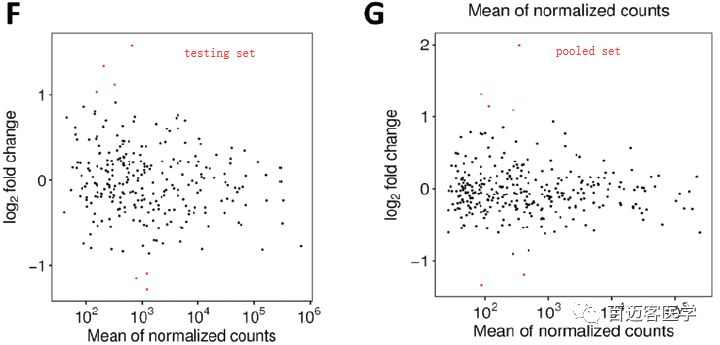 2)testing set:26個(gè)SCZ患者?vs?23個(gè)HC對(duì)照,鑒定高表達(dá)(TPM≥10)的、顯著差異表達(dá)(FDR<0.05)且差異倍數(shù)較高(FC≥2)DEmiRNAs共計(jì)7個(gè),包括前面training set的3個(gè)DE miRNA。
