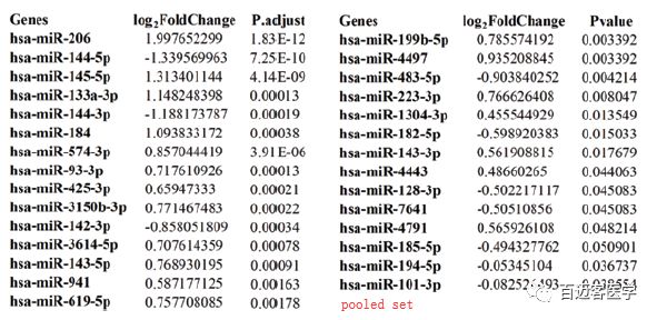 3)pooled set:綜合上述2個(gè)set,共計(jì)6個(gè)miRNA符合上述條件:6 miRNAs (hsa-miR-206、hsa-miR-145-5p、hsa-miR-133a-3p、hsa-miR-144-5p、hsa-miR-144-3p和hsa-miR-184)。