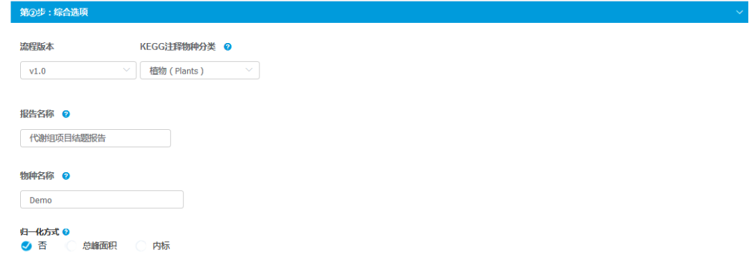 綜合選項選擇,包括注釋物種分類、分析報告名稱、物種名、歸一化方式等