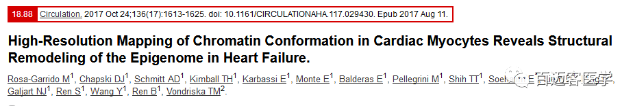 Rosa-Garrido M, Chapski D J, Schmitt A D, et al. High Resolution Mapping of Chromatin Conformation in Cardiac Myocytes Reveals Structural Remodeling of the Epigenome in Heart Failure[J].?Circulation, 2017.