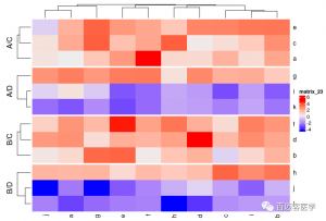 mat?=?rbind(mat,?matrix(rnorm(40,?-2),?4,?10))????#產(chǎn)生一個4行10列共40個平均值是-2的矩陣并與8行10列的矩陣合并成一個12行10列的矩陣