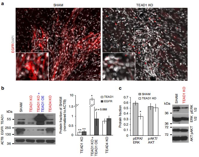 CRISPR-Cas9基因敲除與過表達(TEAD1、TEAD4、EGFR等);RNA-seq;體外–細胞增殖與遷移實驗;體內(nèi)–異種移植實驗;染色質(zhì)免疫沉淀實驗等。
