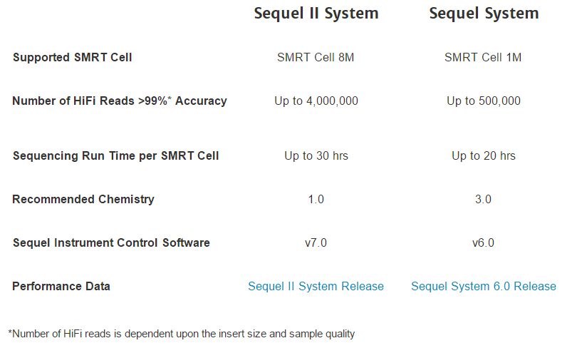 目前市面上的Pacbio平臺有:PacBio RSⅡ、PacBio Sequel、PacBio Sequel Ⅱ三種,其原理相同。隨著新平臺發(fā)布,測序的通量會提升,單G成本會降低。