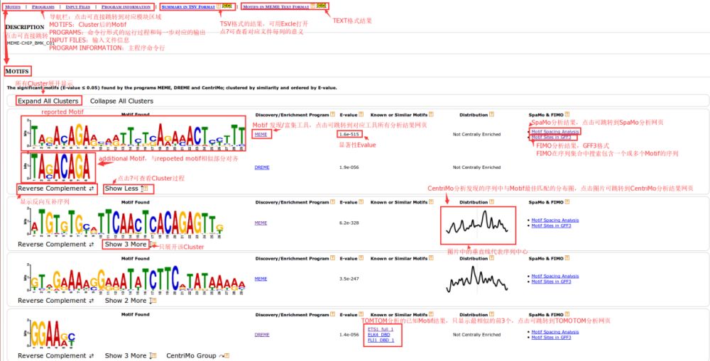 我們根據(jù)實際需求,從MEME-ChIP的原始分析結(jié)果中提取了精華,提供了較為全面完整的分析結(jié)果:
