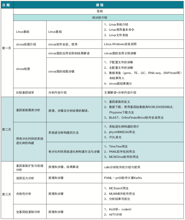 隨著測(cè)序技術(shù)的發(fā)展及測(cè)序成本的降低,越來(lái)越多的物種完成了基因組的組裝,這為多物種比較基因組學(xué)分析提供了大量的可用基因組資源。為了協(xié)助科研工作者對(duì)基因組結(jié)果進(jìn)行深度挖掘,本次培訓(xùn)將從基礎(chǔ)生信操作開(kāi)始,從已發(fā)表的NG、NC等高水平文章入手,帶領(lǐng)大家學(xué)習(xí)比較基因組學(xué)常用的分析方法,從而滿(mǎn)足文章后期發(fā)表的需求,同時(shí)也為我們生物信息科學(xué)工作者們提供一個(gè)互相交流的平臺(tái)。
