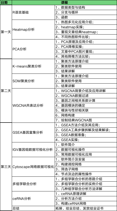 隨著測(cè)序技術(shù)的發(fā)展及測(cè)序成本的降低,轉(zhuǎn)錄組分析逐漸發(fā)展成為基一項(xiàng)礎(chǔ)的分析方法。越來(lái)越多的科研項(xiàng)目中使用轉(zhuǎn)錄組數(shù)據(jù)分析來(lái)做為分析的支持手段之一。為了協(xié)助科研工作者對(duì)轉(zhuǎn)錄組測(cè)序數(shù)據(jù)進(jìn)行深度挖掘,本次培訓(xùn)將從常用的個(gè)性化分析軟件操作入手,帶領(lǐng)大家學(xué)習(xí)轉(zhuǎn)錄組分析中常用的分析方案及實(shí)現(xiàn)方法,從而滿(mǎn)足文章后期發(fā)表的需求,同時(shí)也為我們生物信息科學(xué)工作者們提供一個(gè)互相交流的平臺(tái)。