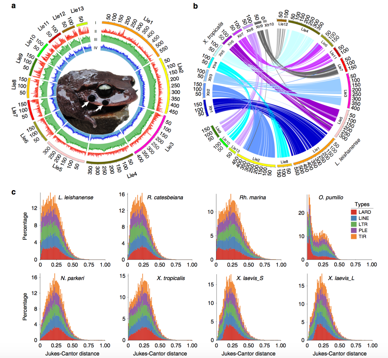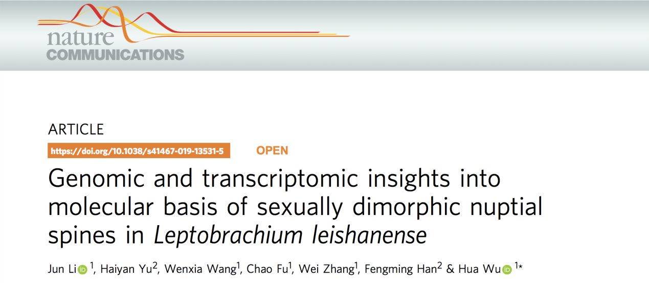 2019年12月5日,國際知名期刊Nature Communications (《自然·通訊》)在線發(fā)表了由華中師范大學(xué)與北京百邁客生物科技有限公司共同合作文章“Genomic and transcriptomic insights into molecular basis of sexually dimorphic nuptial spines in Leptobrachium leishanense”。華中師范大學(xué)生科院吳華教授為本文通訊作者,華中師范大學(xué)生科院李軍博士為論文的第一作者,百邁客生物科技作為第二單位共同參與研究。本研究借助二代、三代PacBio和HiC技術(shù)組裝了我國特有物種雷山髭蟾(Leptobrachium Leishanense)高質(zhì)量基因組,通過比較基因組學(xué)分析及雌雄個體不同發(fā)育時期的有參轉(zhuǎn)錄組分析鑒定了一系列與角質(zhì)刺性二態(tài)發(fā)育相關(guān)的生物學(xué)通路和關(guān)鍵基因。研究成果首次較全面地解析了兩棲動物性二態(tài)形成相關(guān)的重要生物學(xué)通路以及關(guān)鍵基因,彌補(bǔ)了相關(guān)研究的不足。該成果不僅為兩棲動物基因組數(shù)據(jù)庫提供了高質(zhì)量的參考基因組,而且對于深入理解脊椎動物性二態(tài)形成及調(diào)控的分子機(jī)制具有重要意義。