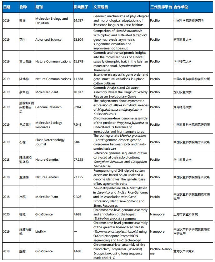 五、百邁客Nanopore、PacBio平臺(tái)動(dòng)植物基因組合作文章總覽(部分)