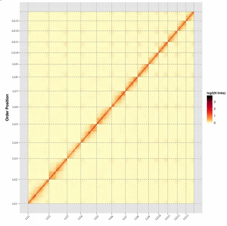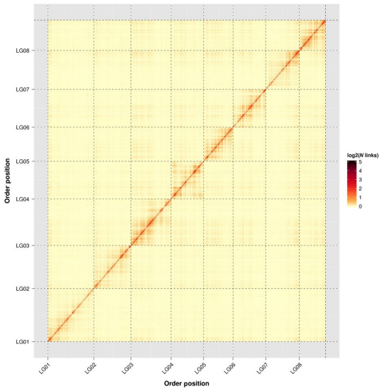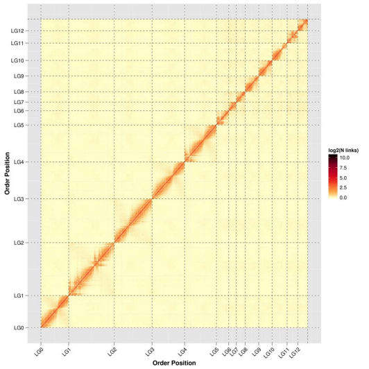 2019年9月30日,福建農(nóng)林大學(xué)基因組研究中心明瑞光教授團(tuán)隊(duì)聯(lián)合多個單位共同合作的紅苞鳳梨研究成果在國際知名期刊Nature Genetics在線發(fā)表。該研究獲得了513 Mb基因組序列,并通過百邁客Hi-C實(shí)驗(yàn)技術(shù)助力,最終將456 Mb基因組定位到25條染色體上(掛載率約88.8%),完成了菠蘿基因組學(xué)領(lǐng)域的再一次突破[2]。