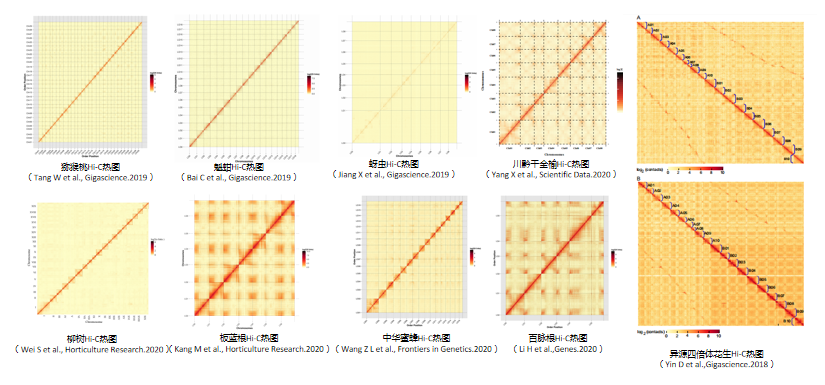 百邁客自2016年初以來,利用Hi-C技術(shù)進(jìn)行染色體水平的基因組組裝及染色體三維構(gòu)象的研究,成功開發(fā)出六堿基、四堿基酶切方案,組裝、互作輕松拿下。在植物Hi-C領(lǐng)域,更是邁進(jìn)了一大步,在同行還只能處理植物活體樣本的時候,我們已經(jīng)可以輕松“駕馭”離體枝條。迄今為止,保持著近100%的建庫成功率,完成逾300種物種,千余個文庫構(gòu)建;文庫含酶切位點(diǎn)的有效數(shù)據(jù)比例高達(dá)93%以上,平均比例高達(dá)68%。另外百邁客在Hi-C技術(shù)方面獲得多個專利及軟著。目前已有多篇成功案例在線發(fā)表,更多Hi-C高分文章已發(fā)表路上,后續(xù)會陸續(xù)與大家見面,敬請期待~~