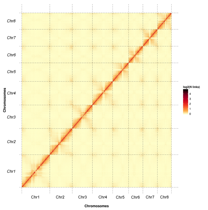 Hi-C測序深度及掛載率:~38.56×;99.25%