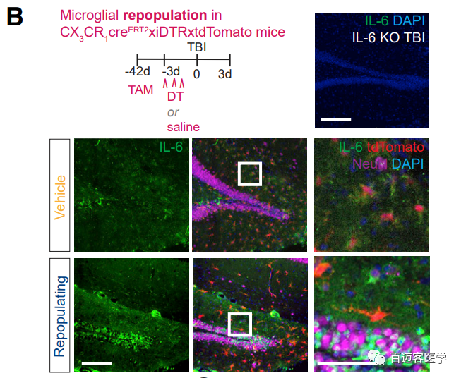 ?圖4 .TBI遺傳模型小鼠中IL-6的細胞來源及正在進行再生的小膠質(zhì)細胞