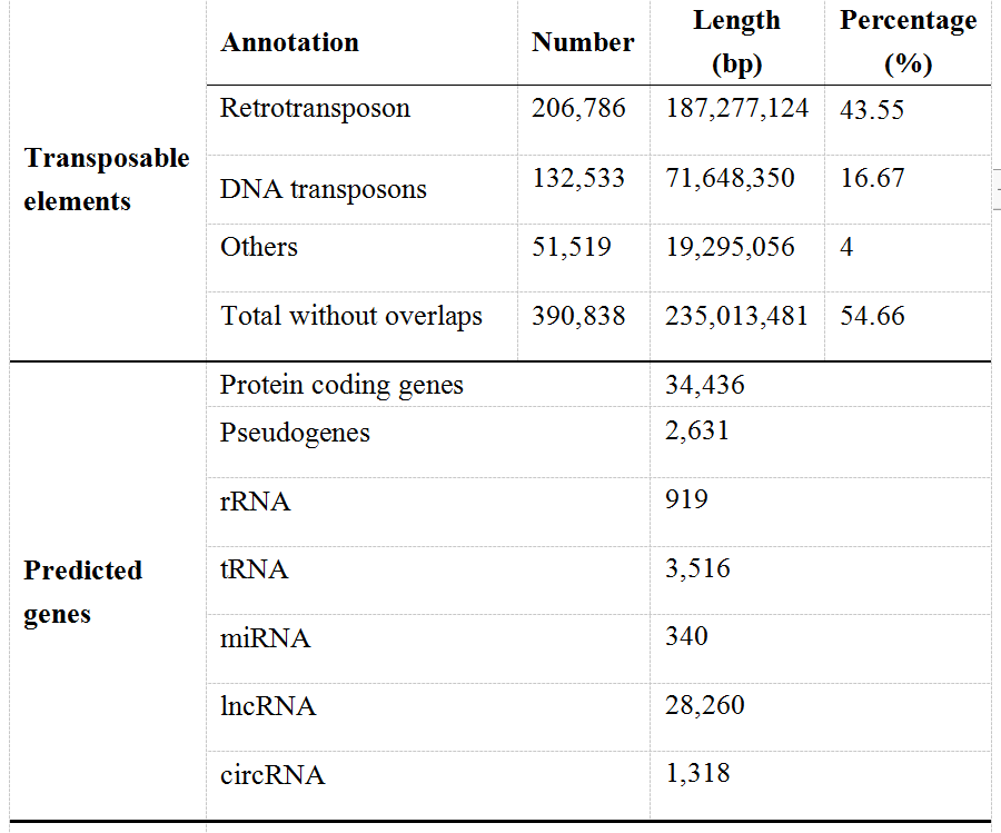 表1 “小米”基因組組裝與注釋統(tǒng)計?