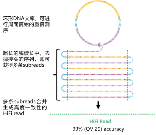 HiFi reads(High Fidelity reads)是2019年由PacBio推出的基于環(huán)化共有序列(Circular Consensus Sequencing,CCS)模式產(chǎn)生的既兼顧長讀長(10-20kb的長度)又具有高精度(>99%z確率)的測序結(jié)果。