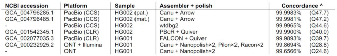 1.使用HiFi Reads 進行基因組De Novo組裝的能力