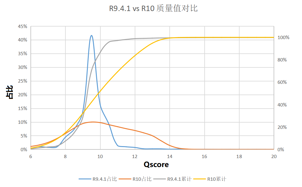 圖1 同一樣本R9.4.1 vs R10 原始產出質量值對比