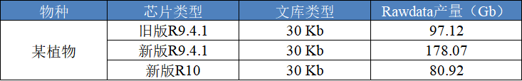表1 同一樣品不同芯片對比產出情況(Denovo 30Kb 文庫)