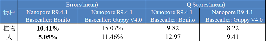 本次更新不僅是有了量的突破,同時也有了質的飛躍,Oxford Nanopore近期發(fā)布了一款名為Bonito CRF的新算法,基于大數(shù)據(jù)進行準確度訓練,可有效提高對單條讀長序列識別(在DNA單分子上確定堿基序列過程)的準確性。通過與最常用的basecalling軟件比對可以發(fā)現(xiàn),Bonito可以有效提升序列識別的準確性,使得高準確性基因組組裝成為可能。