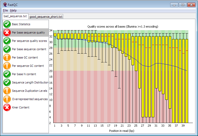 測(cè)序數(shù)據(jù)的質(zhì)量直接決定了數(shù)據(jù)分析的質(zhì)量及可靠性。低質(zhì)量的測(cè)序數(shù)據(jù)往往導(dǎo)致分析結(jié)果出現(xiàn)異?;蛘叻治鼋Y(jié)果中包含過多的假陽性假陰性結(jié)果。利用FastQC可以快速實(shí)現(xiàn)對(duì)大量測(cè)序數(shù)據(jù)的質(zhì)量評(píng)估并生成分析結(jié)果報(bào)告。分析的指標(biāo)完善,同時(shí)可以生成可視化的圖形報(bào)告,數(shù)據(jù)質(zhì)量結(jié)果一目了然。
