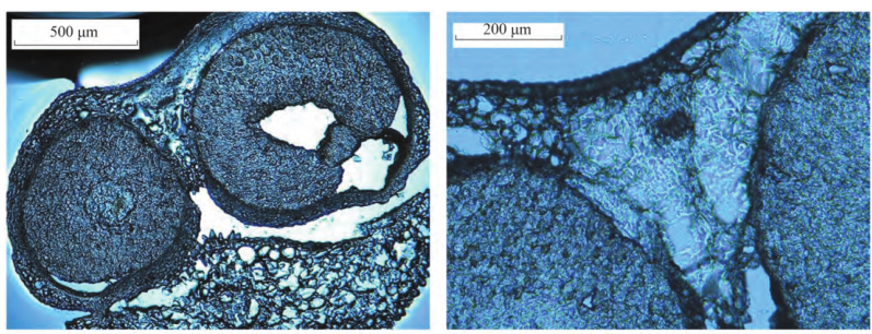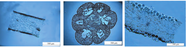 動物組織常用HE(蘇木精-伊紅染色法 ( hematoxylin-eosin staining ))染色,可以精準(zhǔn)識別組織形態(tài)和病理學(xué)鑒定。然而植物的組織存在的纖維素和一些木質(zhì)素不適合HE染色方法,采取的是甲苯胺藍(lán)染色法,其基本原理是植物組織木質(zhì)化細(xì)胞壁呈藍(lán)綠色,其他組織成分呈紫藍(lán)色,可以精準(zhǔn)輔助判斷植物組織形態(tài)學(xué)和確定捕獲區(qū)域。