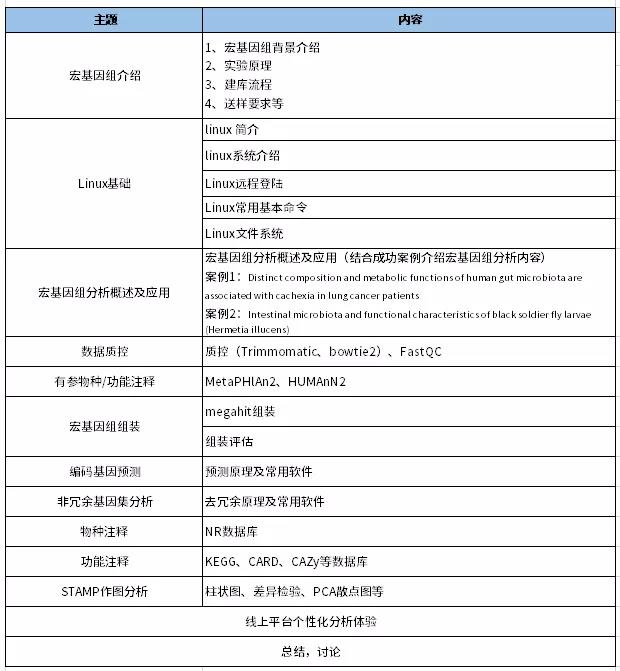 本課程從IF = 10及4分的SCI文章入手,從宏基因組背景介紹、實(shí)驗(yàn)(實(shí)驗(yàn)測序原理、建庫方法和流程、送樣注意事項(xiàng)等)、分析(下機(jī)數(shù)據(jù)質(zhì)控、有參注釋、無參組裝/預(yù)測/物種注釋/功能注釋等)、可視化作圖,讓您全面了解宏基因組分析每個(gè)過程,并結(jié)合案例文章,讓您了解宏基因組文章思路,助力科學(xué)研究。
