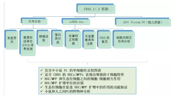 免疫熒光,菌落形成單位(CFU)培養(yǎng)試驗(yàn),移植試驗(yàn),蛋白免疫印跡(WB),scRNA-seq,10× Visium ST,小鼠和人之間FL的跨物種分析