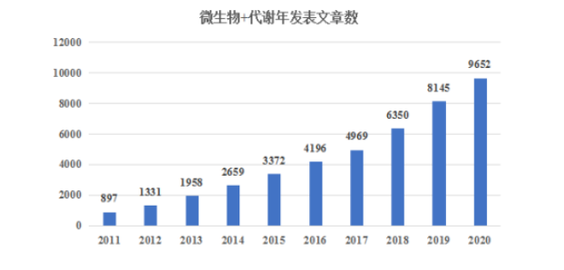 小編先在PubMed網站搜索了一下微生物組和代謝在2011-2020年的發(fā)文情況。以微生物組和代謝組為關鍵詞搜索文獻數量信息。從數據中我們可以看到,微生物和代謝相關文章在逐年增加,47.3%的微生物發(fā)表文獻中都包含代謝組,微生物組+代謝組研究已逐漸成為微生物研究中的重要多組學研究思路。