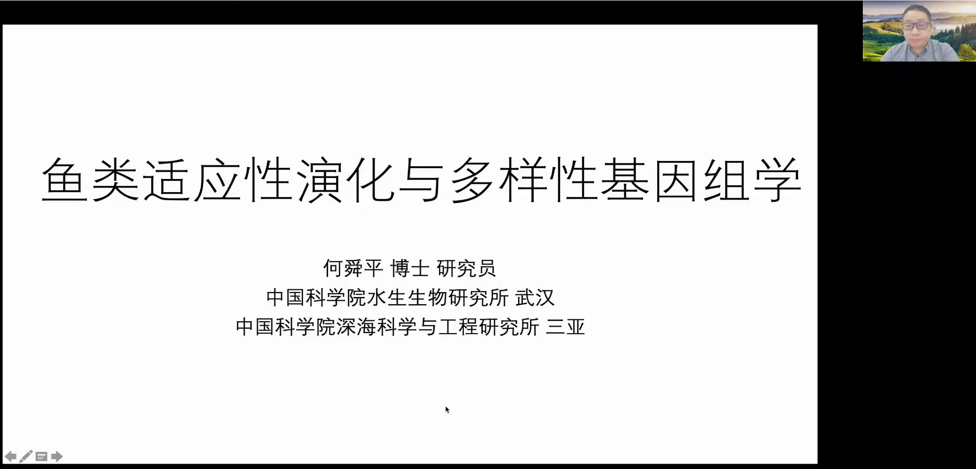 中國科學(xué)院水生生物研究所何舜平研究員充分的介紹了魚類適應(yīng)性演化相關(guān)研究。研究團(tuán)隊(duì)基于輻鰭魚類與四足類進(jìn)化年齡、選擇壓力、表達(dá)模式以及相關(guān)的基因功能的比較分析,探討了它們對脊椎動(dòng)物“登陸”事件以及矛尾魚進(jìn)化的意義。揭示了早在脊椎動(dòng)物祖先首次登陸之前,許多對脊椎動(dòng)物登陸至關(guān)重要的肺、心臟和運(yùn)動(dòng)功能的遺傳調(diào)控網(wǎng)絡(luò)就已存在。進(jìn)一步通過演變中重要地位的肺魚基因組解析了其肺表面活性劑關(guān)鍵基因、手指形成關(guān)鍵元件保守元件、抗抑郁相關(guān)關(guān)鍵基因。最后何老師基于萬種魚基因計(jì)劃也為我們展示了鯉科魚類適應(yīng)進(jìn)化的科研成果。