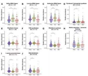 圖3.患病組(PSC)、健康組(HC)與腸炎組(IBD)腸道微生組遺傳潛力