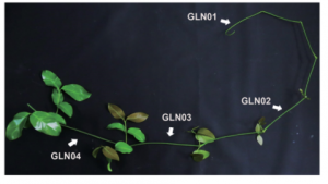 材料:GLN01(莖尖,直徑=0.5-2mm)、GLN02(2-3 mm)、GLN03(3-4 mm)和GLN04(4-5 mm)。每個發(fā)育階段制備了三個重復樣品(兩個來自雌性個體,一個來自雄性個體)
