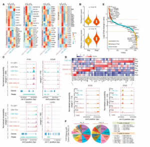 圖9. 聯(lián)合治療后反應性腫瘤中T細胞亞群的轉(zhuǎn)錄組學和表觀遺傳動力學