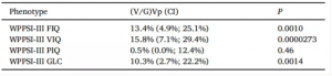 圖2和3表明腸桿菌科的一個屬(未知屬)的相對豐度與較低的WPPSI-III FIQ顯著相關(guān)。這個屬也和WPPSI-III VIQ,PIQ和GLC的低水平得分相關(guān)(圖2 A-D)。后續(xù)分析同時揭示了另外一個屬-韋榮球菌科優(yōu)桿菌屬,與WPPSI-III VIQ得分相關(guān)。