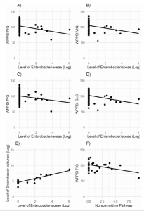 接下來對33個樣本進行宏基因組分析,進一步描述了微生物組的特征。分析表明腸桿菌科的未知屬與阿氏腸桿菌關(guān)系最密切(圖2E),也與陰溝腸桿菌和居中克呂沃爾氏菌相關(guān)。其中陰溝腸桿菌與WPPSI-III FIQ顯著相關(guān),同時陰溝腸桿菌和居中克呂沃爾氏菌相關(guān)。其中陰溝腸桿菌與WPPSI-III FIQ顯著相關(guān),同時陰溝腸桿菌和阿氏腸桿菌腸桿菌與WPPSI-III PIQ相關(guān)。